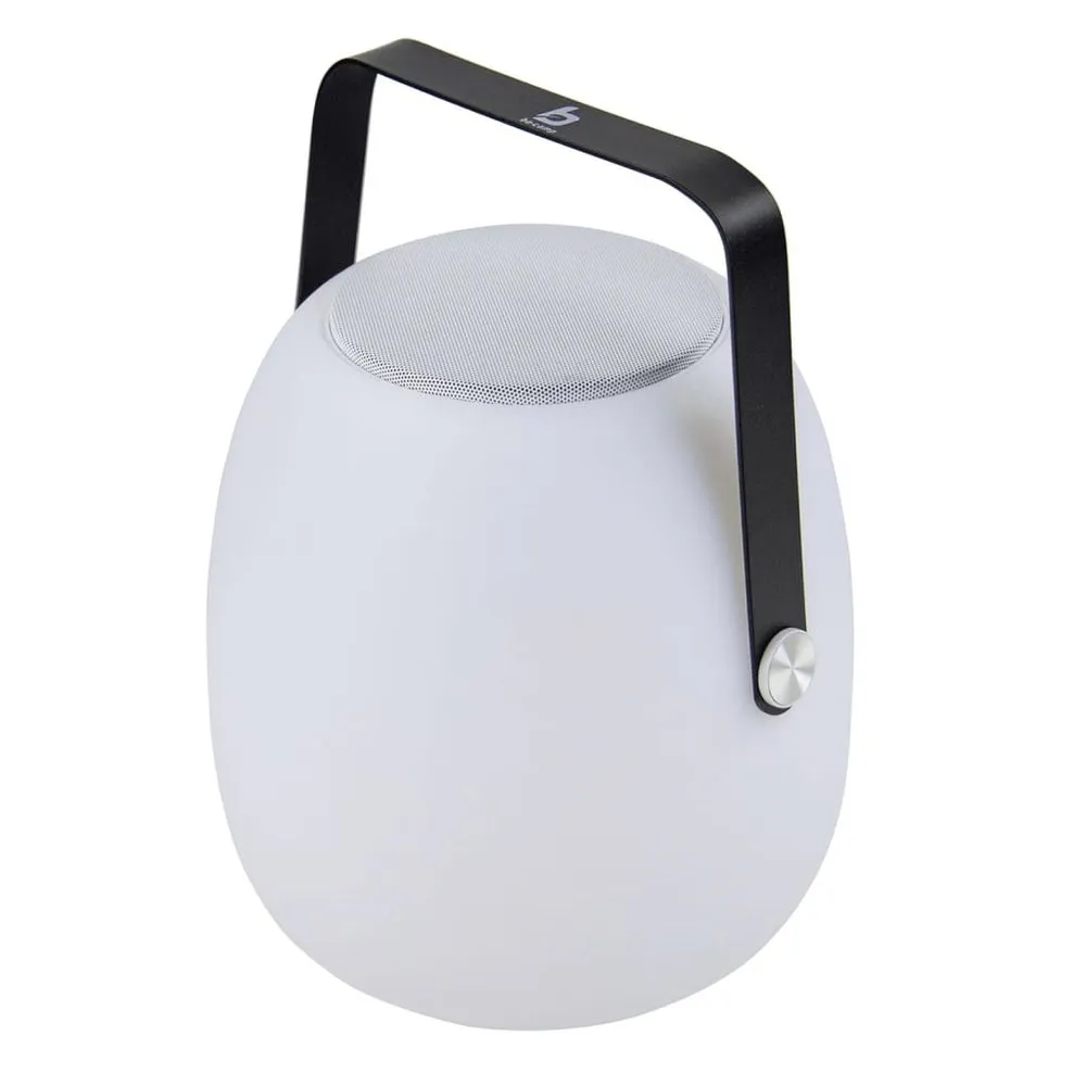 Give an attractive atmosphere to the campsite and get this LED Wade table lamp with Bluetooth speaker from Bo-Camp! As it is rechargeable, it is perfect to use at the campsite. Featuring an industrial look and three light levels, the camping light gives a pleasant warm white LED light. It also has a built-in speaker so that you can combine light and sound. The lamp and speaker can also be used separately. The rechargeable table lamp can be charged through the USB cable (included). It operates on one rechargeable Li-ion battery. Colour: White and black Material: Plastic and steel Dimensions: 22 x 30 cm (Diam. x H) Integrated Bluetooth speaker Rechargeable through USB cable Warm white LED light 3 light modes Industrial design Steel handle Required battery: 1 x 5 V Li-ion rechargeable battery (included) Delivery includes: 1 x USB cable