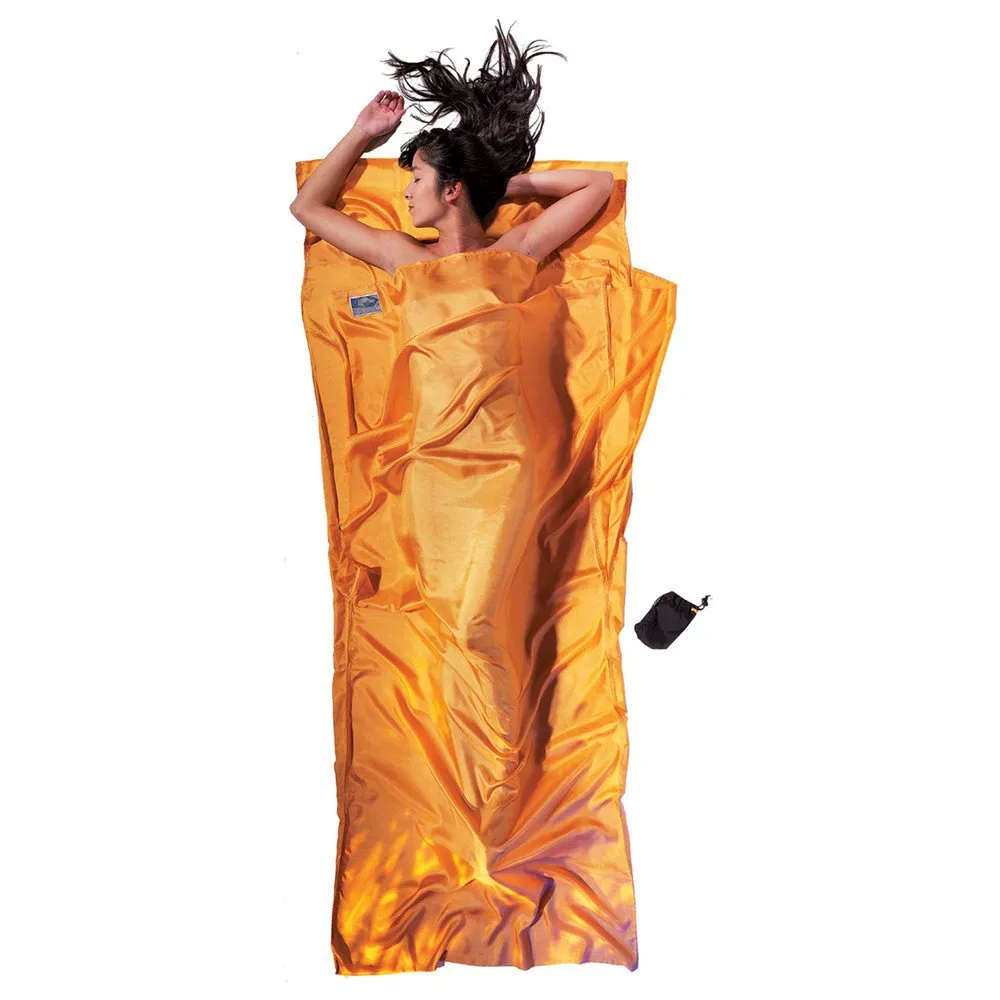 Extremely lightweight and roomy sleep sack or sleeping bag liner for hotels, youth hostels, alpine huts, boats, planes and trains.