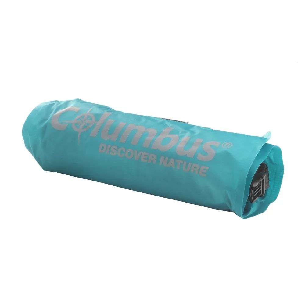 To deflate the mat, open the valve by unlocking the inner cap and roll up the mat to the valve by pushing the air towards the outside. Its size in use is 186x57x4 cm. and once rolled up, it is only Ø10×26 cm. It weights 540 gr.