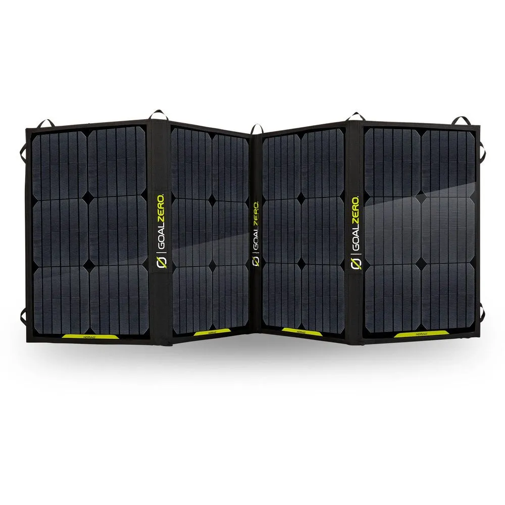 Portátil, resistente y potente, nuestro panel plegable más grande está equipado con 100 vatios de monocristalino diseñado para cargar las estaciones de energía portátiles Goal Zero mediante el sol.