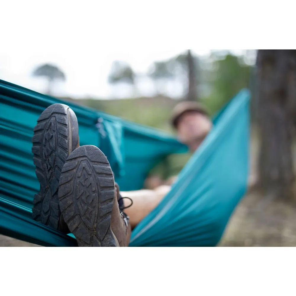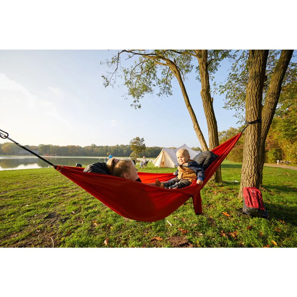 – IN THE BOX:polybag, sticker on polybag, hangtag, hammock with integrated packsack, carabiners, webbing straps, tree savers.
