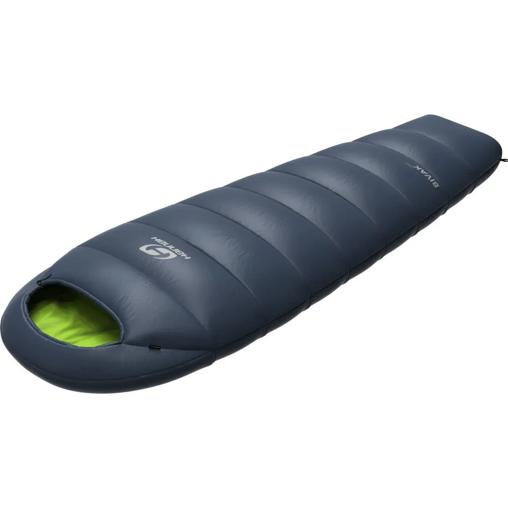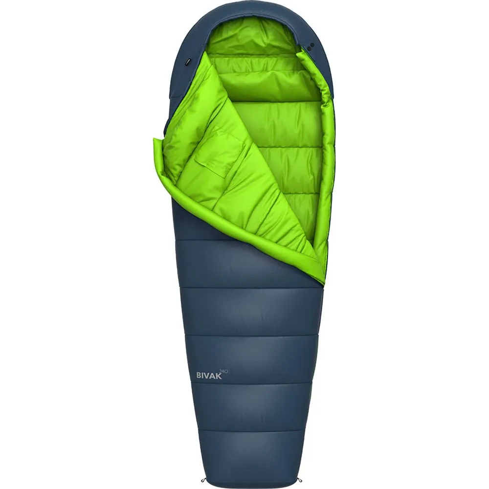 Lightweight sleeping bag, with a minimum volume after packing, suitable for stays in nature, use in cold weather from autumn to spring, filled with Izotherm Pro siliconized hollow fibre, double layer quilted construction , anatomic shape, closed shaped hood, hood regulation with one hand, internal warming collar with regulation , two way zipper with cover, enforced cover protecting zipper from being stuck , safeguard against spontaneous unzipping, hanging loops, internal pocket, pillow pocket in the hood, compression wrapping case.