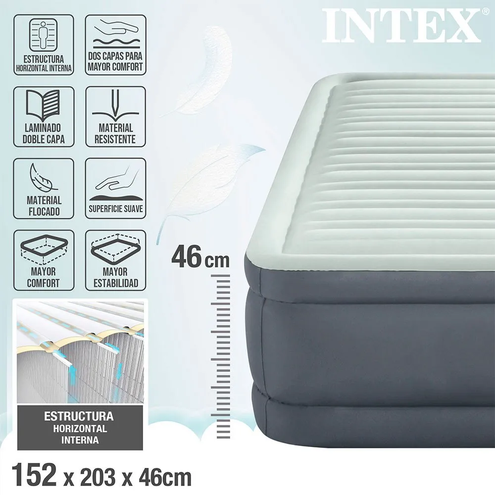 Experience a new dimension of luxury with the Intex® PremAire® I elevated airbed. Built with our patented Fiber-Tech® construction, our PremAire® I beds offer superb structural stability and support. The high-strength fibers provide an interior with amazing durability and unmatched comfort. The bottom and sides of the mattress are made of laminated PVC to provide high-quality puncture resistance. The mattress pillow top is made up of air pockets that allow air to flow smoothly and gradually across the surface for an unparalleled sleeping experience.