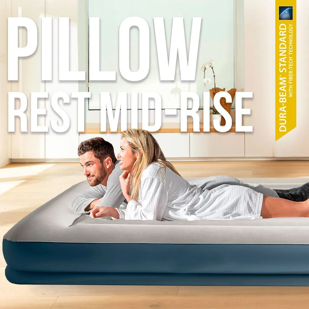 Intex Pillow Rest Mid-Rise inflatable mattress with Fiber-Tech technology.