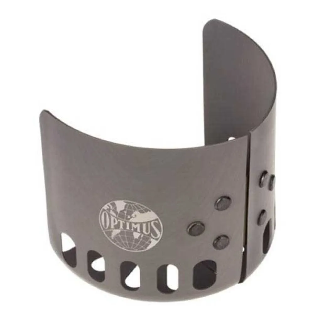 Lightweight, hard anodized aluminium clip-on windshield for use with canister mounted stoves. Increases stove efficiency and substantially reduces gas consumption. Fits every gas canister according to EN417 and pots with max. diameter 11 cm (4.3 in). Compatible with standard pots and high profile heat exchange pots. Easy packability (fits around the Optimus Terra Weekend HE pot).