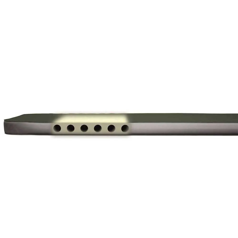 Static side fabric stabilises 3D shape and speeds inflation.Horizontal air channels reduce weight and pack size.