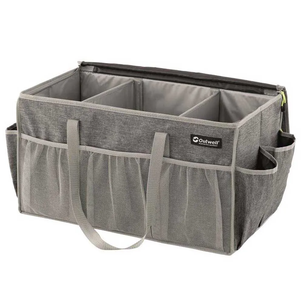 The Margate Kitchen Storage Box folds flat and has many practical pockets, a zipped top lid and two Velcro-fastened, removable internal dividers.FEATURES: