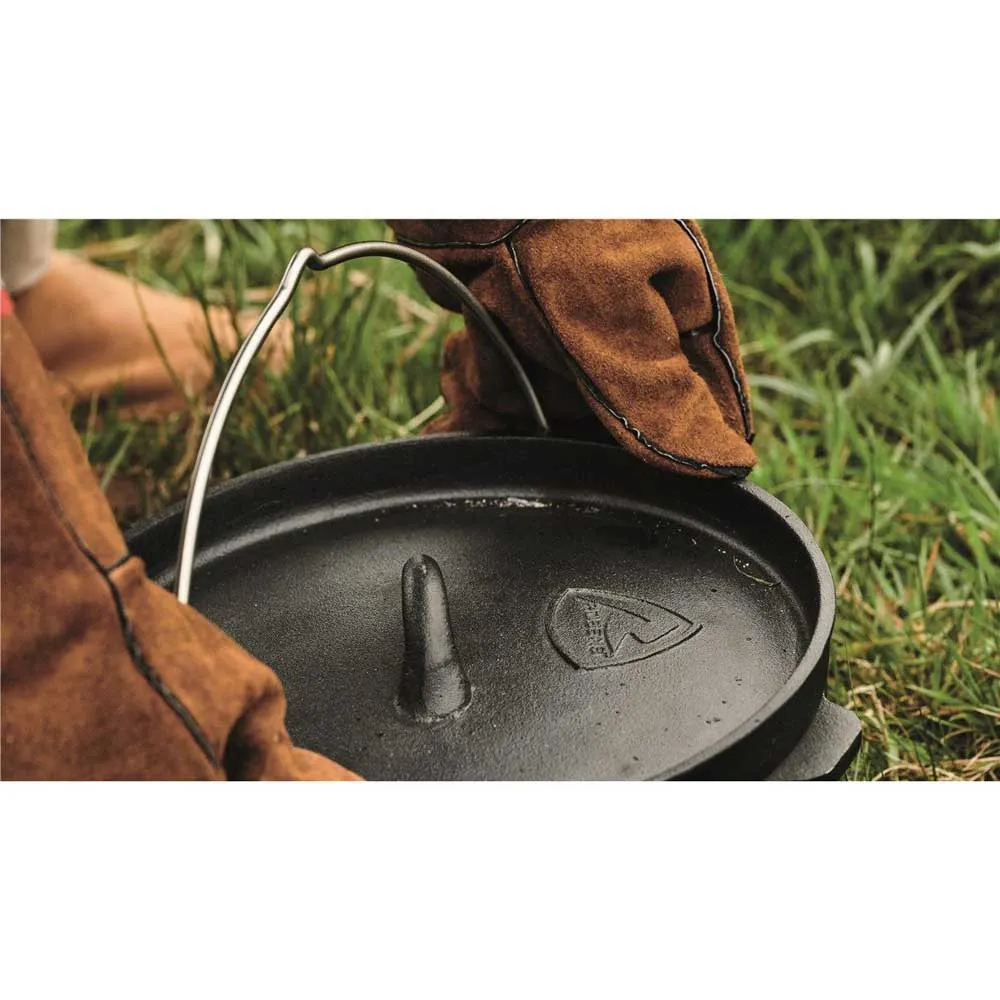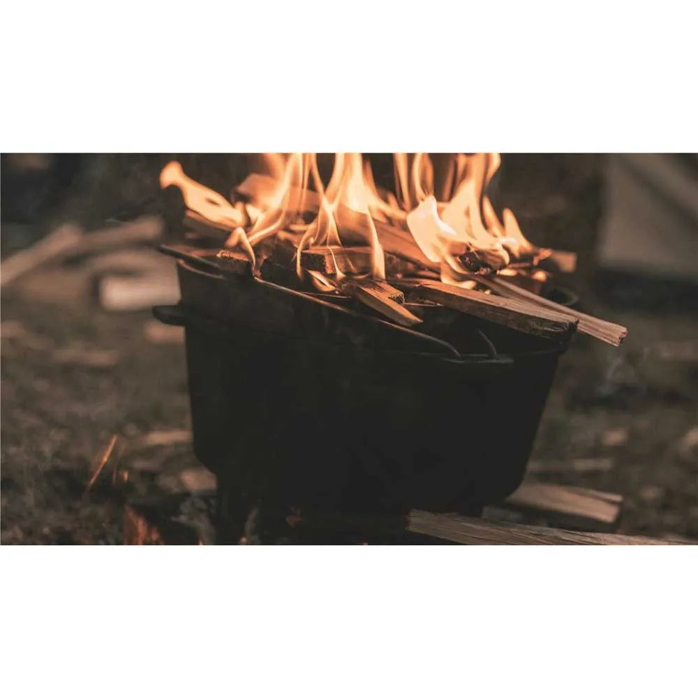 Raised edge on lid holds embers in place for heat above and below.