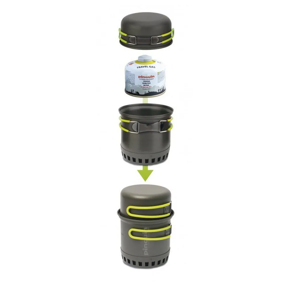 A gas cartridge and a stove can be put into the pot.