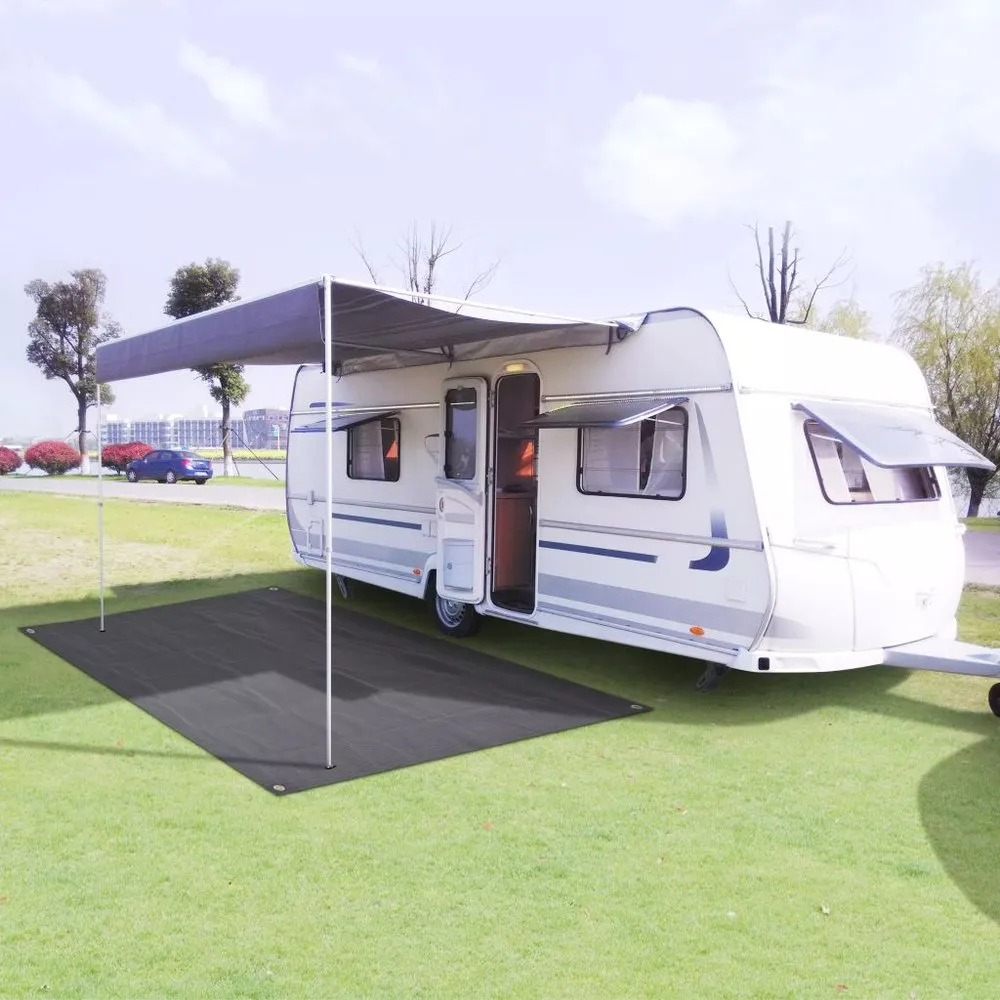 Make your camping trip more comfortable with our tent carpet. Place it in your tent, underneath your caravan awning or on your patio. The tent carpet is made of high-density polyethylene material that has a good water permeability and breathability. The tent carpet is designed with the integrated eyelets at its four corners for convenient attachment. The outdoor rug is easy to keep clean with water. When needed, the tent carpet can be easily cut to any desired size. Colour: Anthracite Material: 100% high-density polyethylene (HDPE) Size: 300 x 600 cm (W x L) With integrated eyelets at the four corners Easy to cut to any desired size Weather resistant and breathable