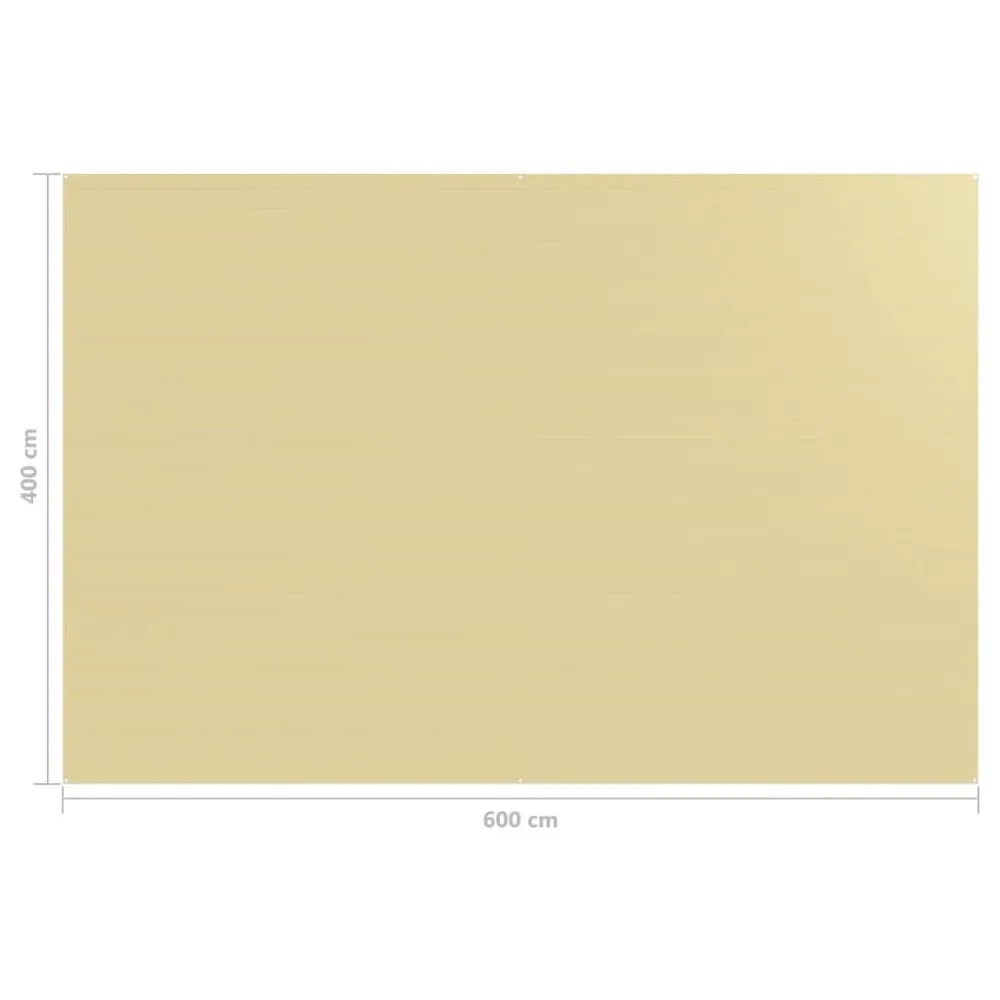 Make your camping trip more comfortable with this tent carpet. Place it in your tent, underneath your caravan awning or on your patio. The tent carpet is made of high-density polyethylene material that has a good water permeability and breathability. The tent carpet is designed with the integrated eyelets at its four corners for convenient attachment.The outdoor rug is easy to keep clean with water. When needed, the tent carpet can be easily cut to any desired size. Colour: Beige Material: 100% high-density polyethylene (HDPE) Size: 400 x 600 cm (W x L) With integrated eyelets at the four corners Easy to cut to any desired size Weather resistant and breathable